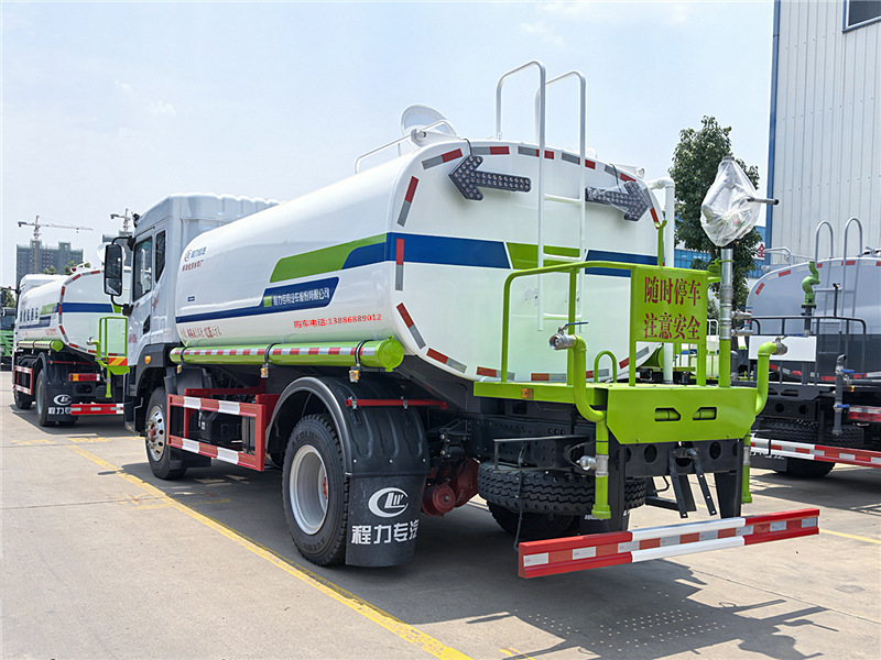 | 上裝配置:罐體采用國標Q235碳鋼板材制作,罐體厚度4mm,前后封頭5MM加厚型,罐體容積14-15噸(14~15方),東風多利卡灑水車質量成熟可靠,設計先進合理,比同類灑水泵吸程遠、壓力大、使用壽命長,可泵進泵出。前沖、后灑、側噴,消防栓接口,帶后工作平臺及綠化灑水高炮(可全方位旋轉,可連續調成直沖狀、大雨、小雨、毛毛雨),水位計,兩根等長輸水管,其余標配。 |