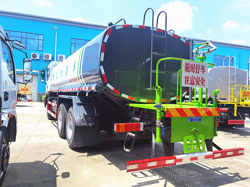 | 上裝配置:罐體采用國標Q235碳鋼,罐體厚度5mm,罐內3道隔板,罐體實際容積18-22立方(18-22噸可選),東風華神T5后雙橋灑水車質量成熟可靠,設計先進合理,比同類灑水泵壓力大、吸程遠、使用壽命長,可泵進泵出。前沖、后灑、側噴,消防栓接口,帶后工作平臺及綠化高炮(可全方位旋轉,可連續調成直沖狀、大雨、小雨、毛毛雨),水位計,兩根等長輸水管,其余標配。 |