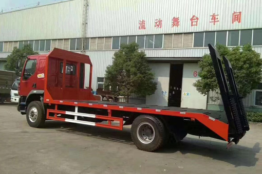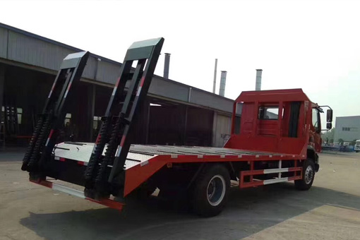 上裝配置:平板底板橫梁采用100*100*5mm方管,底板采用5mm或8mm花紋板,帶加密斜支撐,爬梯采用雙彈簧加強型設計,采用三道筋+雙彈簧加固焊接,可選裝液壓爬梯或折疊加長型液壓爬梯,斜坡處帶后支腿,平板有效板長6.8米(含斜坡),板寬2.5米(可選裝帶左右加寬伸展),可以選擇貨箱帶欄板設計,18噸及15噸以下噸位挖機首選車型!